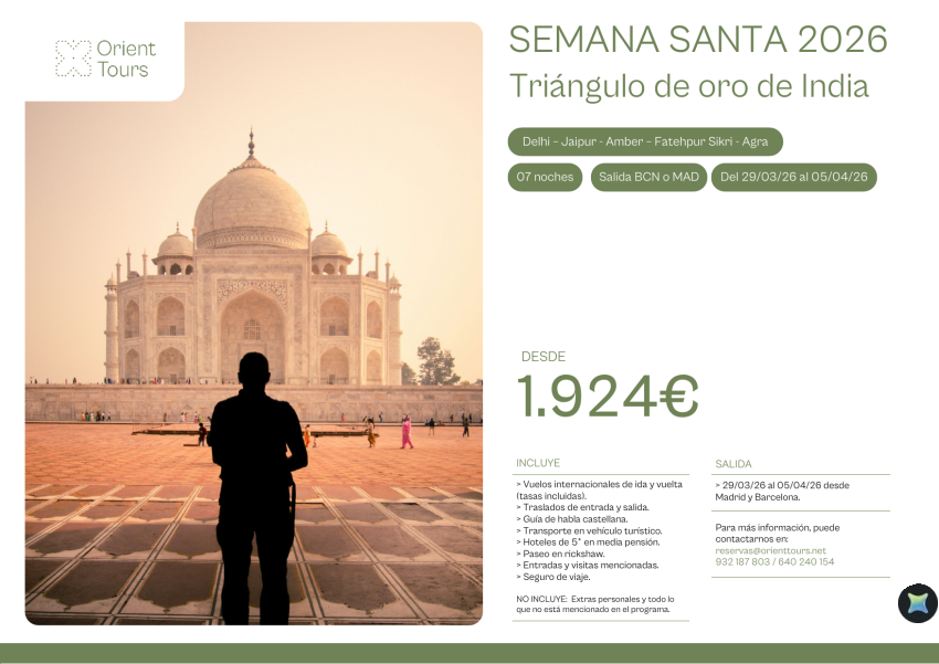 SEMANA SANTA 2026 - Triángulo de oro de la India 07 noches salida 29/03 desde bcn y mad